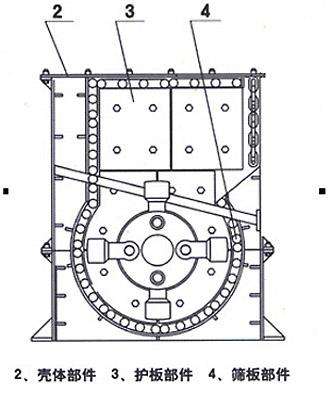箱式破碎機主要由:箱體、蓖條、轉子、錘頭(板錘)、破碎板、襯板等組成,機架部分為三分體結構,只須打開破碎機后部機殼,即可進行更換板錘、破碎板、襯板等檢修維護作業(yè)。